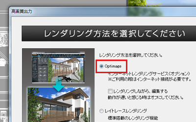 Optimageを使用するソフトを立ち上げ、ツール→「高画質イメージ作成」を選択します。