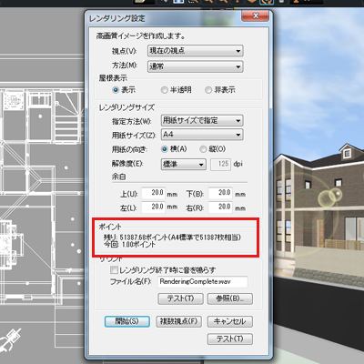 レンダリング設定のポイント項目にて残ポイントが確認できます。