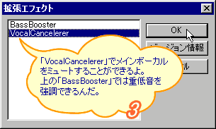 MCDDエクステンションとは、ミュージックCDデザイナー2/Liteの機能を拡張するためのプラグインモジュールです。バスブースト(BassBooster)やボーカル除去エクステンション(VocalCancelerer)もMCDDエクステンションとして作られています。