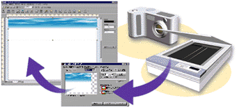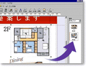 画像のサイズや色調を変更して取り込める便利な「画像加工ウィザード」を搭載。商品をデジカメで撮って配置したり、壁紙をスキャナで取り込んで貼り付けたりするなど、効果的なプレゼンボードを作成できます。