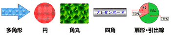 多角形、円、楕円、角丸…などよく使う図形類を簡単に描画。さらに商品説明にかかせない、引き出し線付き文字がワンボタンで簡単につくれます。