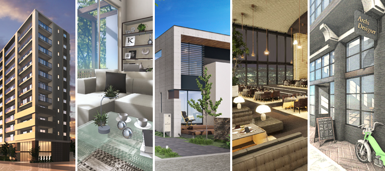・パース出力、レンダリング(レイトレース、インターネットレンダリング、リアルタイムレンダリング)