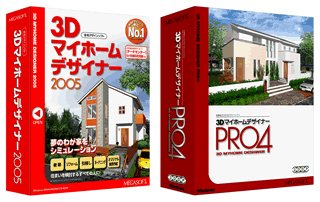 【メガソフトの3Dマイホームデザイナーシリーズ(コンテスト対象製品)】 間取り図から3Dパース図まで、ナビゲーションに沿って操作するだけで簡単に作成することができる住宅デザインソフト。施主自身が夢のマイホームをデザインするための「3Dマイホームデザイナー2005」と、施主とのコミュニケーションツールとして業務に利用するための「3DマイホームデザイナーPRO4」のラインナップがあります。