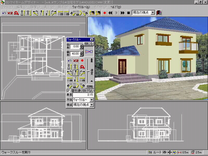 製品情報 ■製品名 3Dマイホームデザイナー ■ジャンル 家庭用3Dデザインソフト ■特長 これまでにないリアルさ、これまでにない簡単さ 新世代の家庭用インテリアデザインソフト ●3D空間の楽しさを家庭に 3Dマイホームデザイナーは、誰でも簡単に、家の間取りを設計したり、 インテリアやエクステリアデザインが楽しめ、出来上がった仮想3次元空間を 自由に歩いて回れる、家庭用高性能3Dデザインソフトです。 ●やさしいユーザーインターフェース これまで一般の人には縁のなかった高度な3次元設計機能をベースに、 まるで積み木を重ねてゆくような簡単な操作で、思いのままに家具を配置して、 好みの室内空間を設計できる優しいユーザーインターフェースを加えた、 高機能で使いやすい3Dソフトです。 ●仮想空間を歩き回れるウォークスルー機能 作り上げた仮想空間の中を、あなたの視点で自由に歩き回ることによって、 でき上がった家のイメージをよりリアルに確認することができる、 ウォークスルー機能を装備しています。 ●すぐに体験できるモデルハウスを多数用意 あらかじめ用意された十数種類のモデルハウスの中をウォークスルーしながら、 イメージを膨らませたり、モデルハウスに変更を加えて自分の好みのレイアウトに 変えることができ、買ったその日から楽しめます。 ●500種類以上のパーツを用意 机、いす、たんす、ベッド、キッチン、テレビ、花瓶など、家庭に存在する さまざまな家具や小物を中心に、オフィスやエクステリア、人物なども加えた 3Dモデルを合計500種類以上用意しました。 マウスで選んで配置するだけで、室内デザインが完成します。 ●マウス操作だけで家が建つ 新規に家を建てる場合も、マウスで床の位置を決め、まわりに壁を建てて、 家具を配置するだけで、自由なデザインの家を建てることができます。 もちろん、窓や扉の位置も自由自在。マウス操作で視点を変えたり、 サイズ変更をしたり、これまでにない簡単な3次元デザインが可能です。 ●家具のサイズや形状も自由自在 用意されている家具は、実際の家具の寸法に合わせることはもちろん、 縦横の比率を変えたり自由に変形することが可能です。 自分の欲しい家具が用意されていなくても、既存の家具を加工することで 新規に作成する手間が省けます。 ●新規の家具の作成も簡単 新しい家具を一から作りたいという場合には、 立方体や球、円柱、三角錐、回転体や押し出しツールなど、高度なモデリング機能や 豊富に用意されたテクスチャーマッピングデータを組み合わせることで、自由な形状、 質感のモデルを作成可能。創造意欲を満たします。 ●ウォークスルーを登録・再現 3Dマイホームデザイナーは、ウォークスルーの軌跡を登録することによって、 いつでもその軌跡を再現することができます。 また、作成した3D空間をうっかり変えてしまうことなく、安心してウォーク スルーだけを体験できる、ウォークスルー専用モードも用意しています。 ●ウォークスルーをアニメーション化 ウォークスルーの結果をムービー(AVIファイル)として出力することが可能です。 一度実行した軌跡をそのままにビデオ化できますので、 何度も人に見せたいシーンなどを手軽に記録しておくことができますので、 プレゼンテーションツールとしても便利に利用することができます。 こんな使い方をお薦めします。 ■住宅設計・インテリアデザインツールとして 新築のマイホームの間取りの検討や、引っ越し先の家具の配置のシミュレーション、 テクスチャーマッピング機能を利用した壁紙や家具の色の検討など、 誰でもが気軽に使える実用的なレイアウトツールです。 ■家族みんなでホームデザイン 優しいユーザーインターフェースでだれでも簡単に使えるので、 ウォークスルー機能を使った迷路遊びや3Dデザイン機能を使った宇宙空間や 広場のシミュレーションなど、アイデア次第で様々な使い方ができます。 パソコンを囲んで家族の会話がはずみます。 ■プレゼンテーションツールとして これまでの紙の上での提案方法に比べて、パソコン上で自由な視点/角度で、 カラー、質感まで自由に確認ができ、さらに仮想空間を歩き回れるウォークスルー 機能によってイメージをより的確に伝えることが可能になります。 空間設計の検討ツール、会議の場でのイメージの共有ツールとして、 家庭以外でも十分にご活用いただけます。 ■教育用として 空間認識力の養成(小中学校)、使いやすいキッチンのレイアウトのシミュレーション (家政科)、建築設計(建築学科)、インテリア/エクステリアデザイン(インテリア 学科)、3Dモデリング機能を使った立体オブジェの制作(美術学科)など、CADの 専門知識を必要としない使いやすさと抜群のコストパフォーマンスで、多くの教育の現 場でお使いいただけます。 動作環境: 必須条件 Windows95が動作するパソコン CPU:486/100MHz以上 メモリー:16MB以上 ハードディスク:12MB以上