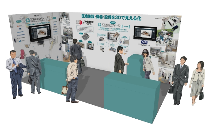 | 出展製品 | : 3D医療施設デザイナー10(開発中製品) メガソフトVRソリューション 他 |