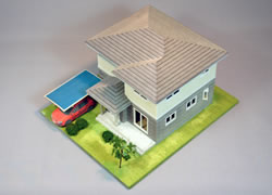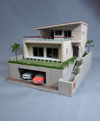 | 住宅模型 標準タイプ 1/50、1/75、1/100、1/150、1/200 の中からご希望の縮尺で作成します。 価格は仕上がりサイズによる従量制です。 |