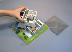 | 住宅模型 ミニタイプ 縦・横・高さの合計が約15cmになるように縮小して作成します。 |