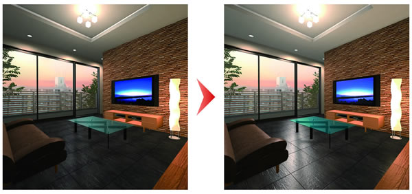 外壁材の凹凸の表現やタイル床の光沢感などがさらにリアルに表示できるようになりました。
