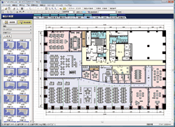 オフィス家具や什器、OA機器など、オフィスに必要な素材パーツを3000点以上収録しており、マウスでパーツを配置する簡単な操作でオフィスのレイアウトプランを作成できます。