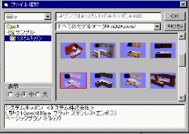 「室内インテリア編」 (家具・ブラインド・玄関収納・照明...etc) ●3Dパーツ 室内空間を充実させるインテリアのパーツを豊富なバリエーションで多数収録。 実在する家具をリアルにモデリングしています。 パーツは実際のサイズで収録していますので、作り上げた住空間に配置するだけ で現実的な間取り・寸法の目安にもなります。 <収録素材> ・ダイニングセット・机/ライティングビューロー/文机/座卓・いす/ ソファ・本棚/飾り棚/玄関ボード・ドレッサー・ベット/ベットリネン ・カーテン/ブラインド・照明・家電など、300点以上 ●テクスチャーマッピング カーテンやカーペット、家具の表面の質感を出すテクスチャーマップを多数用意。 <収録テクスチャー> ・木目・布・カーペットなど、100点以上 ●モデルハウス モデリングのお手本として役立つ積水ハウス「IS STAGE」シリーズの モデルハウスを収録。 協力:カリモク家具販売株式会社、積水ハウス株式会社 ■動作環境 ・Windows95(日本語版)が動作するパソコン ・「3Dマイホームデザイナー」または 「Cyber Walker Ver1.5」((株)東洋情報システム)がインストールされたパソコン ■製品構成 CD−ROM 1枚 パーツ一覧表(マニュアル) 1部 アンケートはがき 1部 ■標準価格 各5,800円(税別) ■店頭発売予定日 1997年 5月 9日(金) ■流通方法 全国のパソコンショップなどで販売 3Dマイホームデザイナーのユーザーへの優待販売 ■開発 株式会社東洋情報システム/メガソフト株式会社 ■販売 メガソフト株式会社 ■JANコード 「マイホーム建築編」:4956487001510 「室内インテリア編」:4956487001527 ■お客様からのお問い合わせ先 メガソフト インフォメーションセンター TEL: 06-6147-2780 FAX: 06-6131-5081 〒564 大阪市北区中崎西2-4-12 梅田センタービル11階 受付時間:9:30〜11:45 13:00〜17:00(土曜、日曜、祝祭日をのぞく)