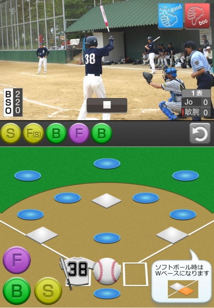 また、「good」「boo」ボタンを連打して、ナイスプレーやエラーを撮影者の視点で評価できます。