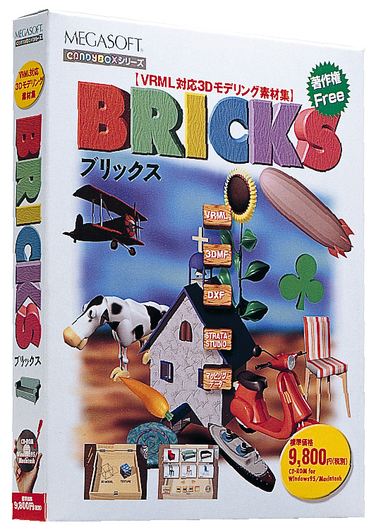 1996年 8月27日 メガソフト株式会社 報道関係各位 VRML対応3Dモデリング素材集 BRICKS(ブリックス)発売
