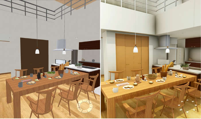 今回の高画質3D表示機能搭載により、壁材・床材から家具・ファブリックまで、リアルな質感で確認できるようになります。
