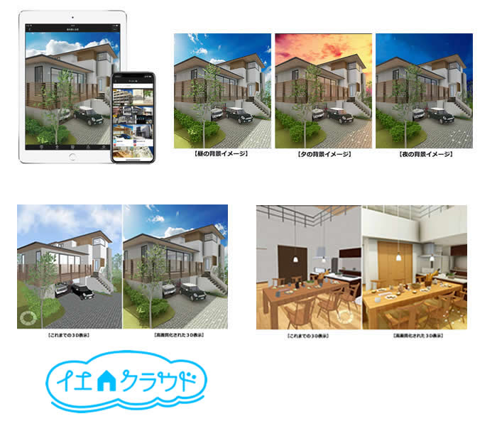 これによりイエクラウドの活用シーンは、住宅の外壁や壁紙、床材の仕様検討、店舗のファサード、インテリアデザインの検討用途にまで広がります。