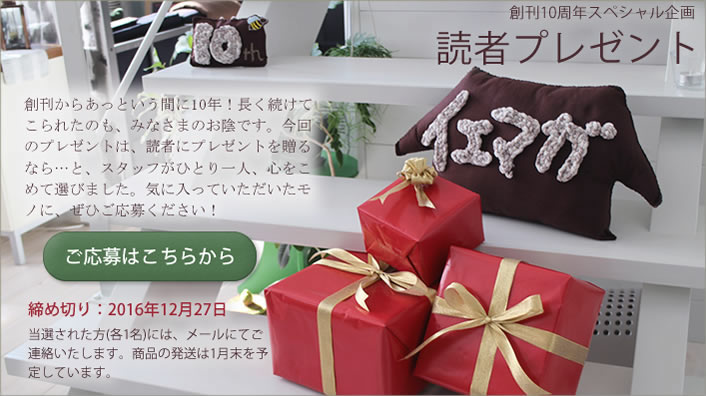 イエマガでは、2016年12月7日(水)より創刊10周年スペシャル企画「読者プレゼント(」を実施します。