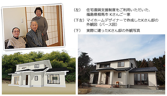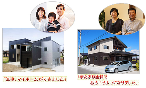 東日本大震災で住宅を失われた方の住宅再建支援制度を2012年より継続しています。小さな活動ですが、ご利用いただいた方からは、マイホームを再建できた喜びの声をいただいております。