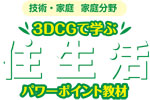 「3DCGで学ぶ住生活パワーポイント教材/ワークノート」は、写真資料に加えてコンピュータグラフィックによる3D画像・動画映像を豊富に収録した製品で、生徒の関心や理解を深め、円滑に授業が運営できることを企図して開発されました。