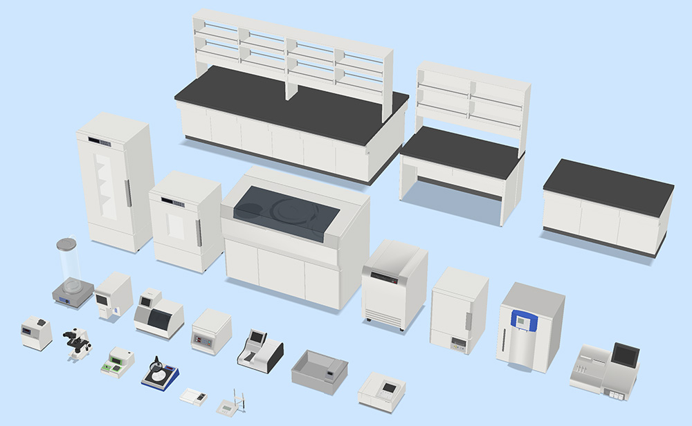 本ソフトは医療機器メーカーや医薬品商社、医療施設コンサルタントなど多くの企業に導入されていますが、それら利用者からの強い要望により、検体検査機器の3Dパーツ36点を今回追加しました。