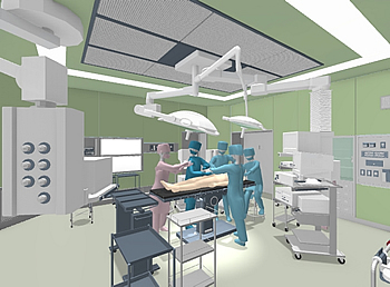 その中で事業の対象となる外国人患者、受け入れる日本の病院、また、医療関連メーカー、海外の医療機関に、日本の医療施設を紹介・説明するためのツールとして、先進的な手術室や処置室を3DCGで表現する「3D医療施設モデル」の作成を進めています。