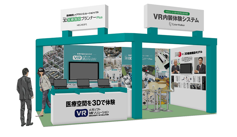 HOSPEX Japan 2017のメガソフトブース(東京ビッグサイト/コマ番号<5A-203>)では、MEJがメガソフトの3Dソフトで作成した医療施設モデルをVRで体験できるコーナーを設置。そのほかにもメガソフトに製品情報を提供している医療機器メーカー、同展示会に出展している医療系ユーザー企業の実案件もバーチャル体験できます。