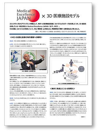 HOSPEX Japan 2017では、その内容の一部を「Medical Excellence JAPAN×3D医療施設モデル」として公開します。