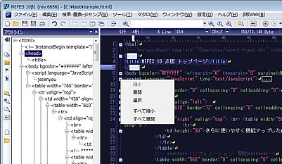 「MIFES」(マイフェス)は、各種プログラム言語のソースコード、HTMLなどのWebソース、テキスト原稿、CSVやXMLなどのデータファイル、 バイナリファイルなど、さまざまなファイルを編集できる高機能テキストエディタです。1985年の発売以来、幅広い分野のプロフェッショナルにご使用いただいています。