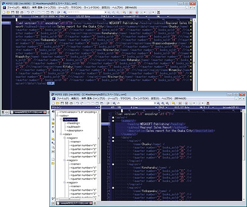 また、ファイルの全体構造把握が容易になるアウトライン表示機能や、誤入力・誤編集を軽減する入力支援機能などを追加し、検索機能やファイル比較もさらに機能アップしています。