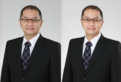【3Dマイフェイスデザイナーを使用した弊社代表(左:ビフォー 右:アフター)】