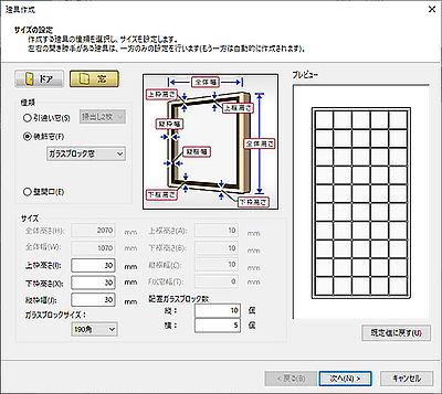 ・建具作成ウィザード(ガラスブロック窓パーツが作成可能に)