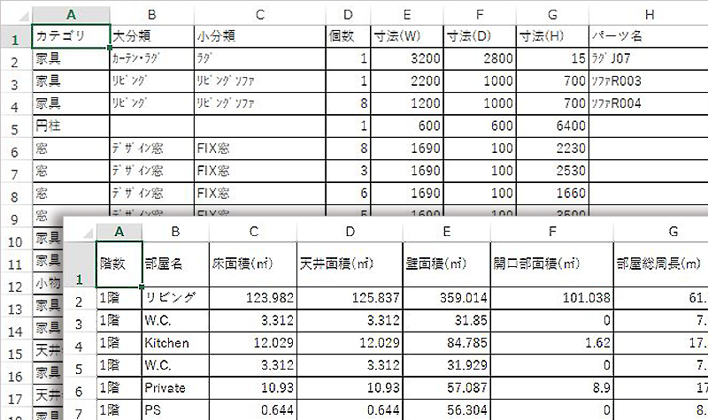・面積・パーツ集計機能(EXCEL形式に対応)