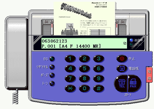 実際のファクシミリの操作パネルをユーザーインターフェースに採用した好評のSTARFAXの通信マネージャーです。実際にファックスを送る感覚で簡単にFAX送信ができ、送受信の状況もイメージ表示されるのでとても安心です。