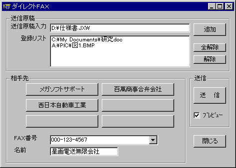 「STARFAX OCX」応用ソフトウェア「ダイレクトFAX」の画面