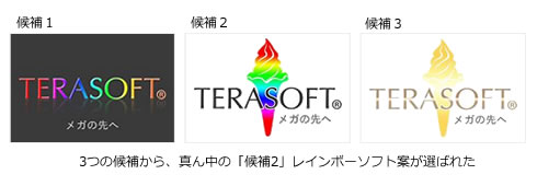 3つの案の中から「TERASOFT」のうしろに、レインボーなソフトクリームがあしらわれたものが選ばれた。