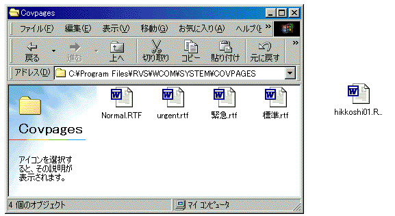 [マイコンピュータ]-[RVS-COMがインストールされているハードディスクドライブ]-[ProgramFiles]-[RVS]-[Wcom]-[System]-[Covpages] |
