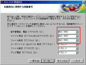 「自動着信に使用する回線番号」ダイアログまで進みます。