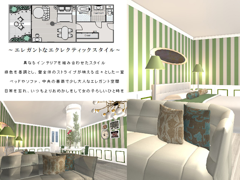 大手前短期大学の授業では3Dマイホームデザイナーを使っています。履修項目としては「インテリアCAD-1」と「インテリアCAD-2」があります。▲JAPANTEXコンテストで入賞した学生さんのプランシート(画像クリックで拡大表示します)