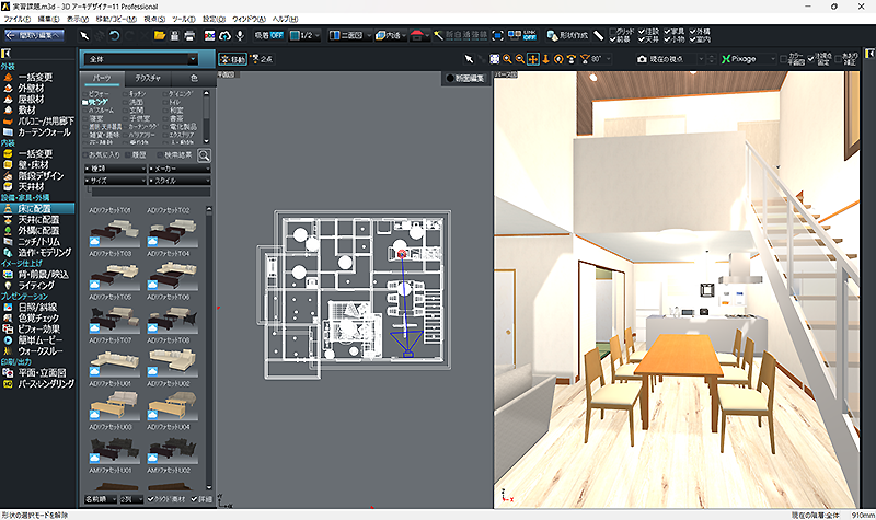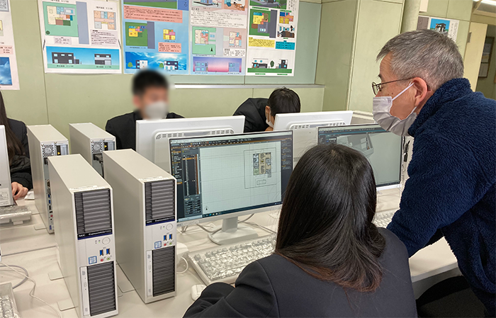 実際に授業に取り入れてみて、簡単に間取りや建具等を入力することにより、3Dで確認することができ、プランの立体的なイメージを確認しやすく空間把握もしやすいと感じています。