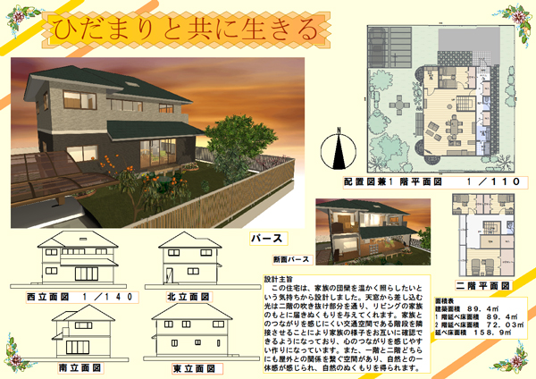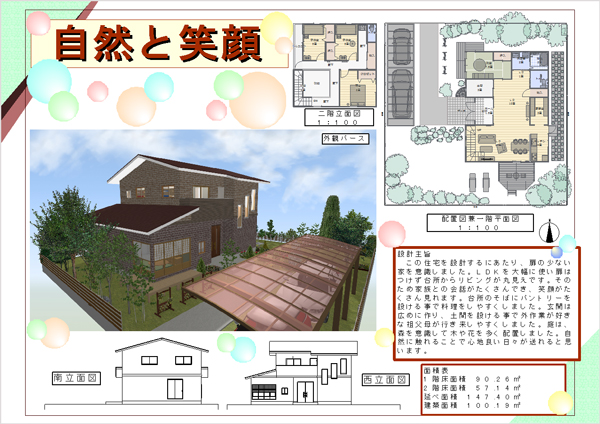 設計コンペもプレゼンボードで提出することが多いのですが、3Dマイホームデザイナーにはプレゼンボードのひな形があるので、こちらも便利に使わせてもらっています。