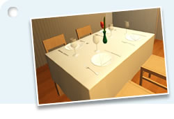 また、3DCG空間を作ることが得意な3Dマイホームデザイナーを使用するので、テーブルだけでなく食空間全体のイメージを作ることが可能です。