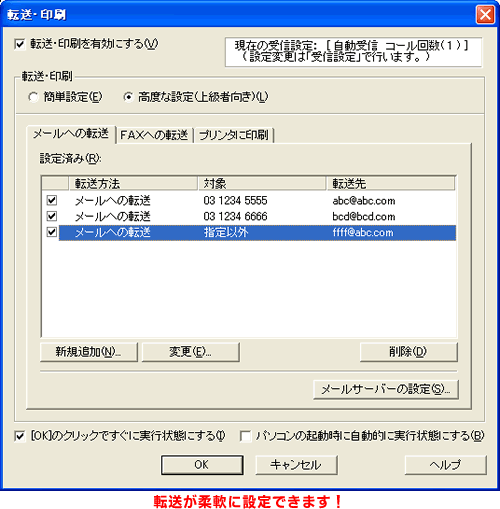 > 転送設定が柔軟に!