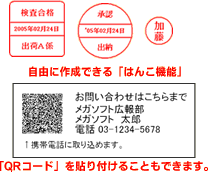 FAXの編集機能には、自由に作成できる「はんこ機能」に加え、QRコードを編集して貼り付けられるFAXソフト初の「QRコードはんこ」機能が使えます。