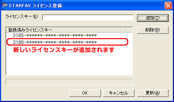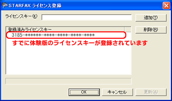 体験版をお使いの方は、「ライセンスキー」を登録するだけで、製品版としてご利用いただけます。 一からインストールし直す必要もなく、体験版時に作成されたデータや設定を引き継ぐことができます。 STARFAX2005の体験版は、下記のページにてダウンロードできます。