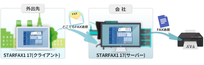 外出先からインタ―ネット経由でFAX送信できる「どこでもFAX機能」も搭載。