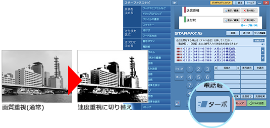 少しでも早くFAXを送りたい。そんな時は「ターボ送信機能」をご利用ください。