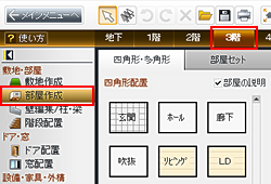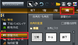 1. 3階タブを選択ナビの[部屋作成]を選択し、「2階建て」であれば[3階]など、最上階の間取りよりも1つ上の階のフロアタブを選択します。