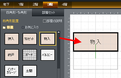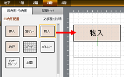2. パレットから「物入」の部屋を選択し、上屋を掛ける部分に配置します。