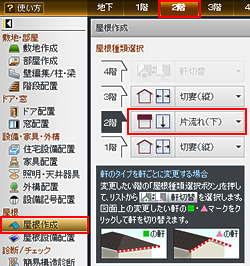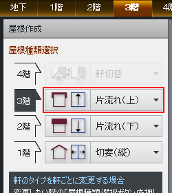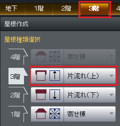 2. f0024b_05パレットの「3階」の屋根切り替えボタンをクリックして[片流れ(上)]を選択します。