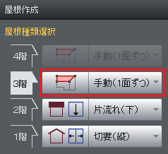 屋根パレットの[手動(1面ずつ)]をクリックします。