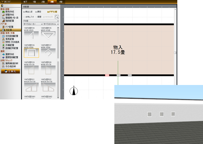3. f0024b_03[設定]メニューの[立体化設定(外装・内装・屋根・階高)]を選択します。
