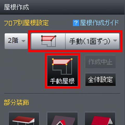 一面ずつ屋根を作成する基本操作